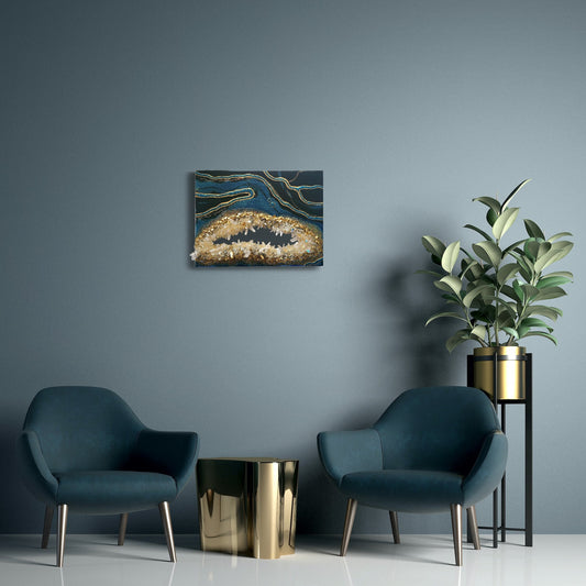 Resin wallart with quartz crystals. Resin contemporary geode shimmering effect painting. 11"×14"